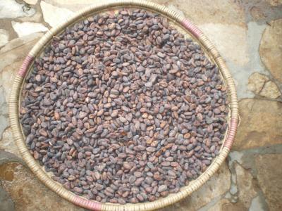 Des fèves de cacao séchées prêtes à l'exportation.