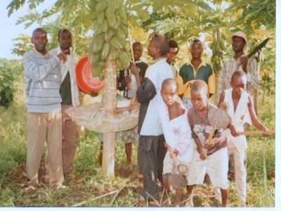La récolte du latex sur les papayes en vue de la production de la papaïne P2 et P3 à notre Plantation Kabalua (Mutwanga-BENI).
