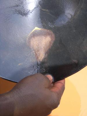 La recherche des paillettes d'or dans la rivière s'effectue souvent par cet ustensile qu'on appelle "Karaï". C'est très efficace.